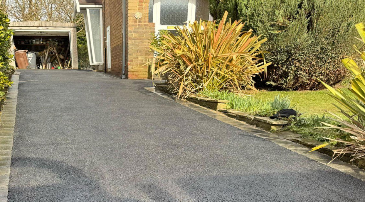 Tarmac is a popular driveway option, made from a mix of crushed aggregates and tar, creating a durable and weather-resistant surface.